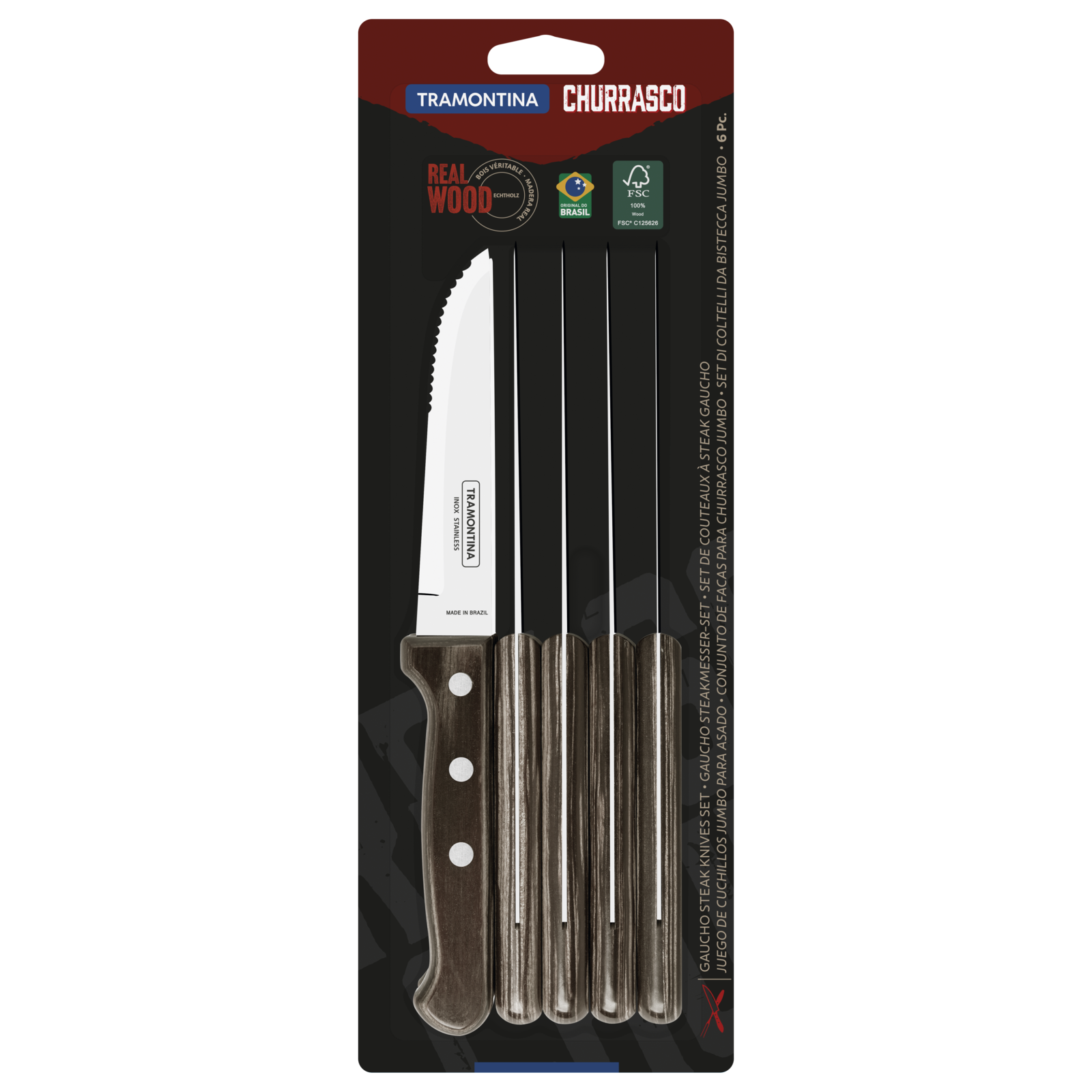 Los cuchillos Jumbo Polywood de Tramontina están diseñados especialmente para asados. Su hoja robusta y afilada garantiza cortes precisos y limpios, mientras que el mango Polywood ofrece un agarre cómodo y seguro, resistente al calor y a la humedad. Ideales para profesionales y aficionados que buscan calidad y durabilidad en cada preparación.